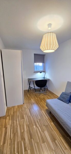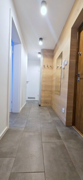Mieszkanie ma powierzchnię 52,1 m2, składa się z odrębnej kuchni, 3 ustawnych pokoi, przedpokoju oraz łazienki z WC. Do mieszkania przynależy piwnica. Mieszkanie pozostaje z pełnym wyposażeniem.