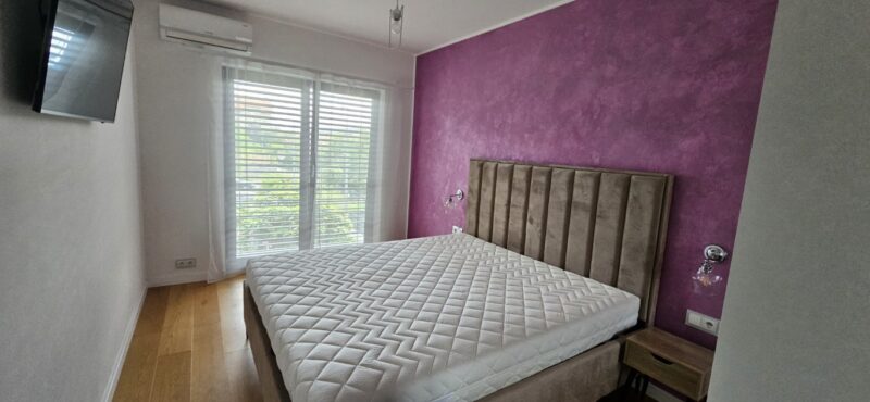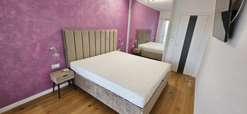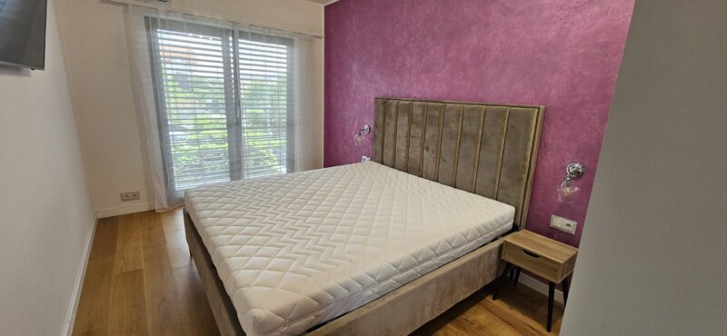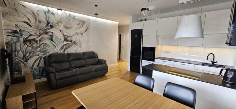 Składa się z pokoju dziennego z otwartą kuchnią, 3 sypialni, przedpokoju z komórką, łazienki wraz z toaletą oraz balkonu. Mieszkanie wykończone w najwyższym standardzie, pozostaje z pełnym wyposażeniem. Do mieszkania przynależy zewnętrzne miejsce parkingowe oraz komórka lokatorska.