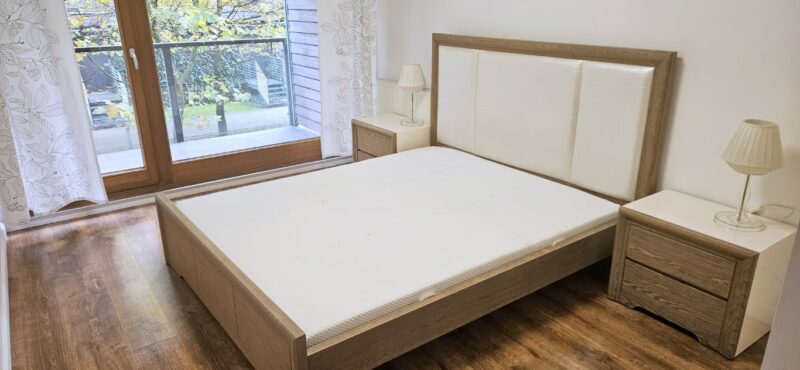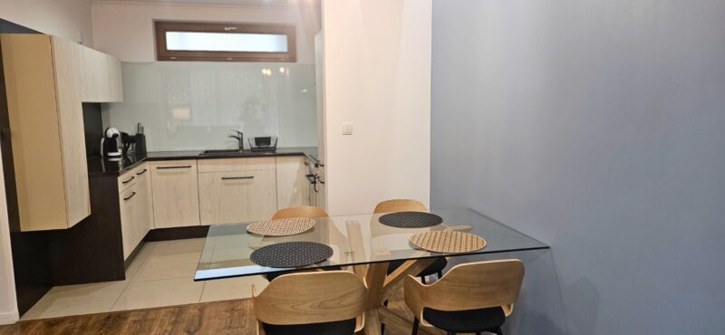 Mieszkanie jest w pełni wyposażone. Wykończone w bardzo wysokim standardzie, Wysokiej jakości glazura oraz stolarka, granitowe blaty. Do mieszkania przynależy garaż w cenie najmu 250zł/za miesiąc.