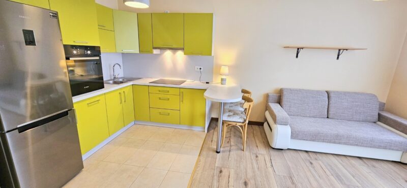 Nieruchomość ma powierzchnię 34m2. Składa się z pokoju dziennego z otwartą kuchnią, sypialni, łazienki, przedpokoju oraz balkonu. Mieszkanie jest w pełni wyposażone i urządzone z dbałością o każdy szczegół.